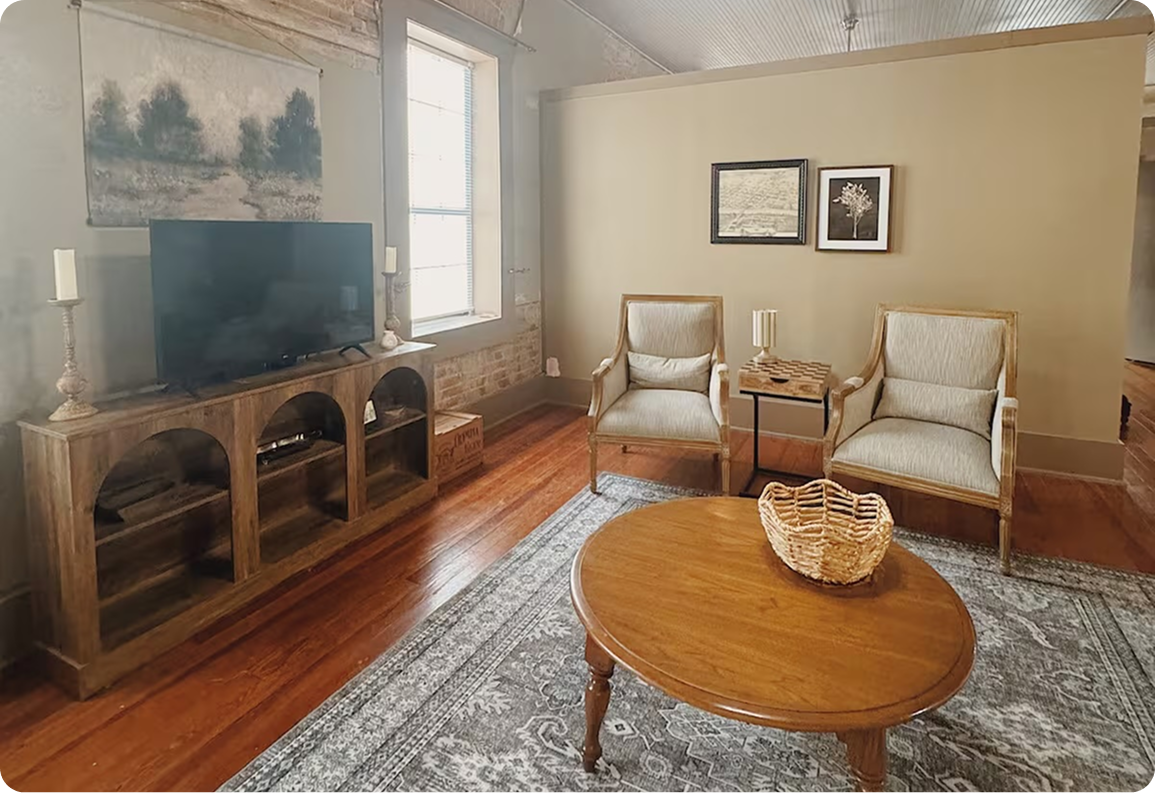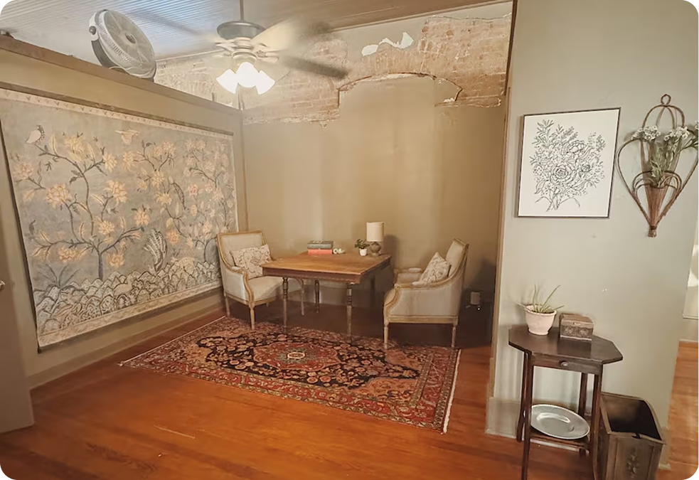 In this charming upstairs retreat! Nestled just off I-35, this restored space occupies the entire 2nd floor above an art school.
